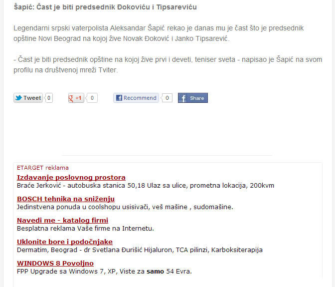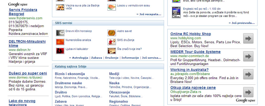 Odličan način da se po niskoj ceni oglašavate na najposećenijim sajtovima u Srbiji, u specijalnim uokvirenim boksovima sa slikovnim i tekstualnim rešenjem. Spada takođe u kontekstualnu vrstu oglašavanja. Sistem funkcioniše po principu PPC (plaćanje po kliku), a određivanje cene klika je po aukcijskom principu i zavisi od trenutne konkurencije.