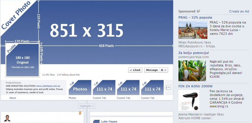 Odličan način popularizacije vašeg fan page-a, kao i samog sajta. Postoji mogućnost tzv. ‘’Like’’ kampanje gde povećavate broj brand fanova koji će pratiti vaše buduće aktivnosti, kao i varijanta kampanje koja vodi zainteresovane na vaš kompanijski sajt. Izuzetno dobar način oglašavanja zbog mogućnosti usmeravanja kampanje ka ciljnoj grupi po godinama, polu, teritoriji i interesovanjima. Ovaj sistem oglašavanja takođe funkcioniše po PPC sistemu (plaćanje po kliku), a određivanje cene klika je po aukcijskom principu i zavisi od trenutne konkurencije.